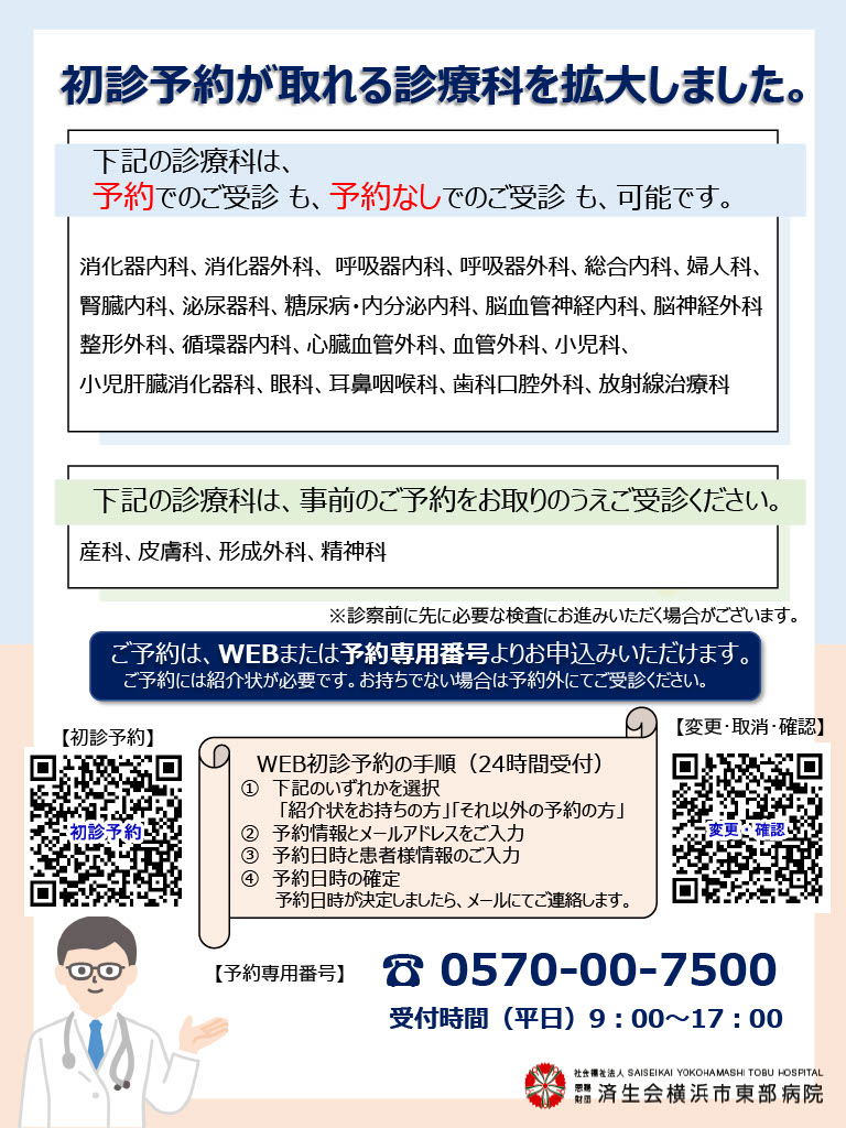 初診予約が取れる診療科を拡大しました(2026年1月19日から)