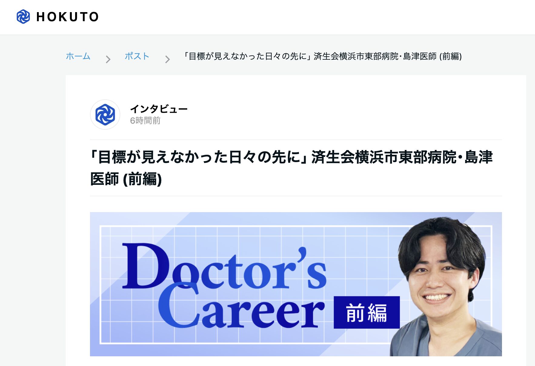 NEW【メディア情報】当院の専攻医へのインタビューが医学生・研修医向けサイト「HOKUTO」に掲載されました