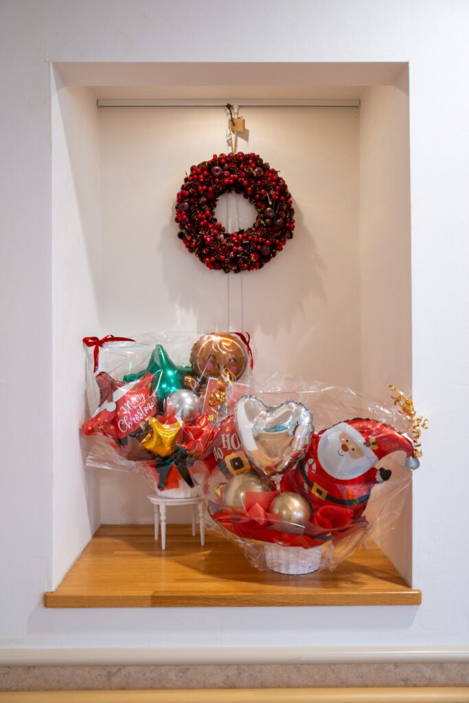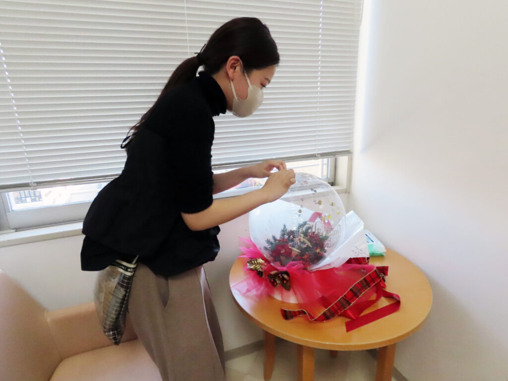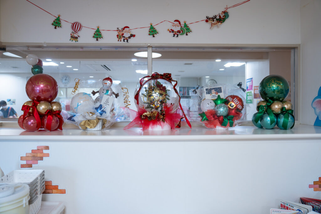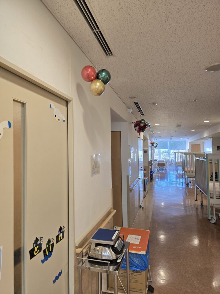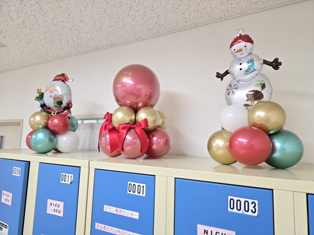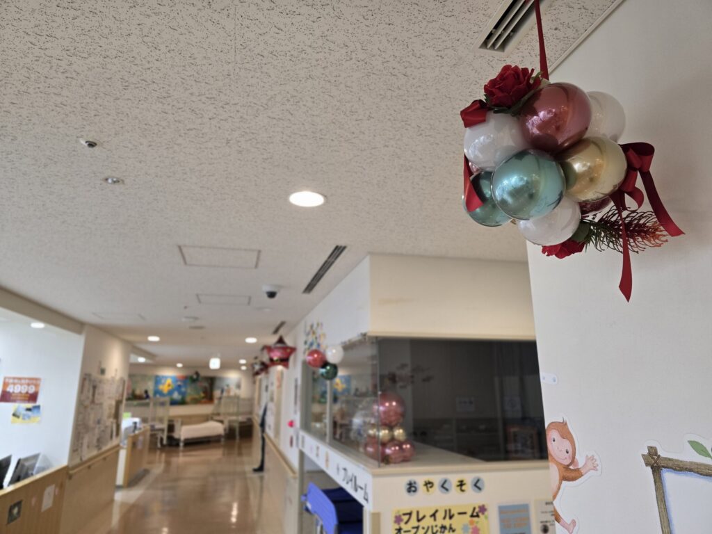 設置日の11月28日には、ORYZAE Celebrations(オリゼ セレブレーションズ)様から2名ボランティアでお越しいただき、クリスマスモチーフの様々なバルーンで病棟を明るく彩ってくださいました。ありがとうございました!