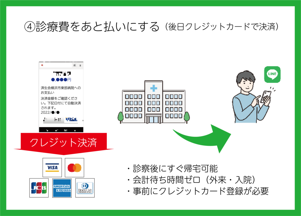 ④診療費をあと払いにする(後日クレジットカードで決済)