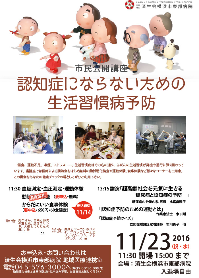 11/23(祝・水)「認知症にならないための生活習慣病予防」市民公開講座開催