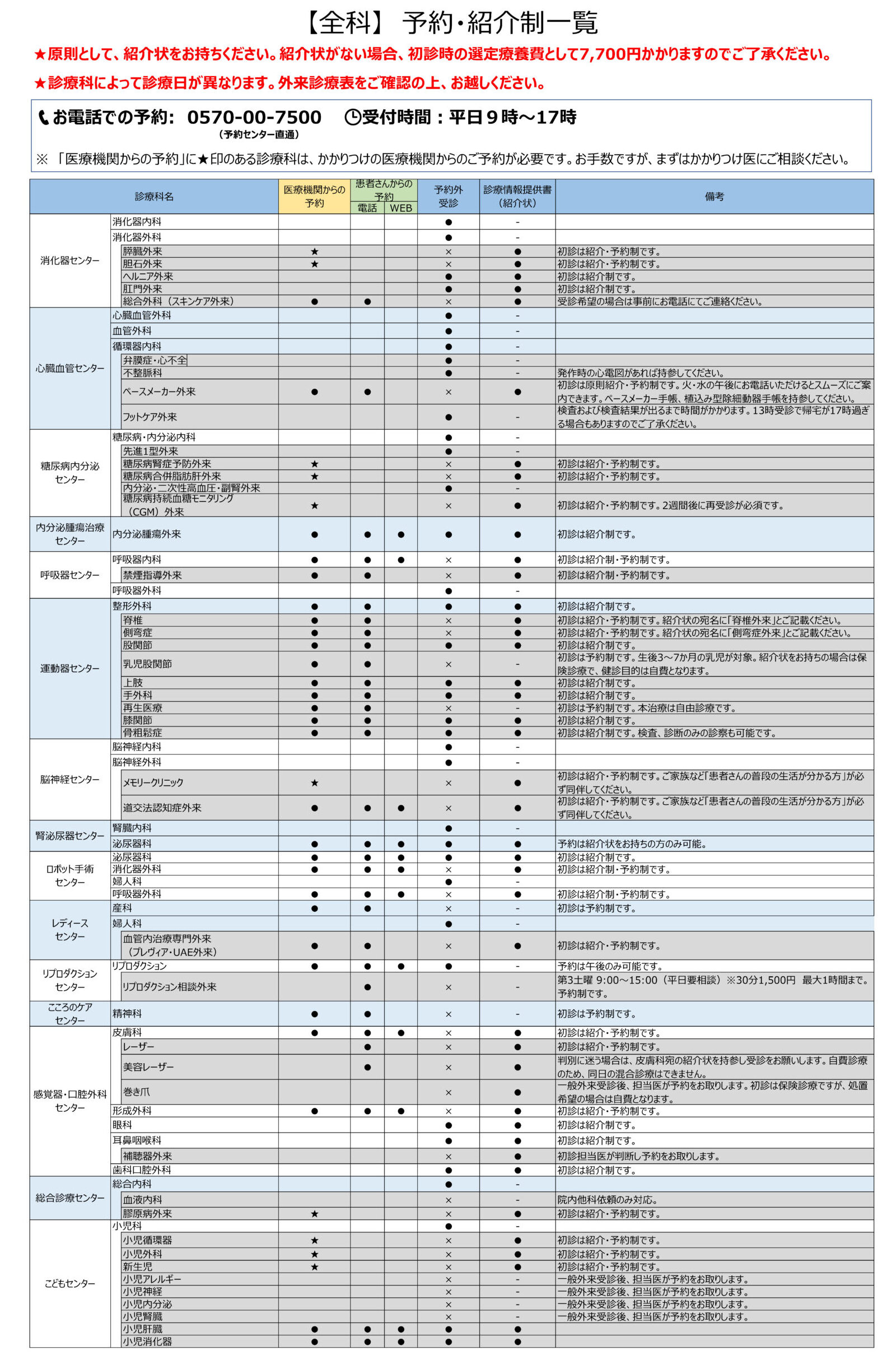 事前のご予約や紹介状のご持参がない場合、ご受診いただけない診療科がございます。